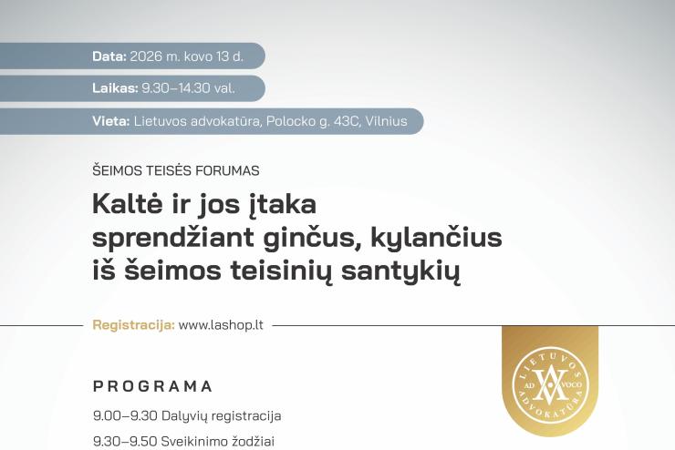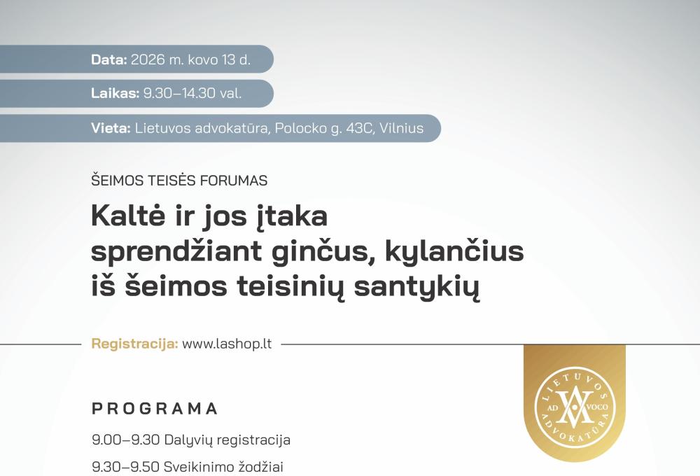 Lietuvos advokatūros Šeimos teisės pakomitečio forumas kovo 13 d.